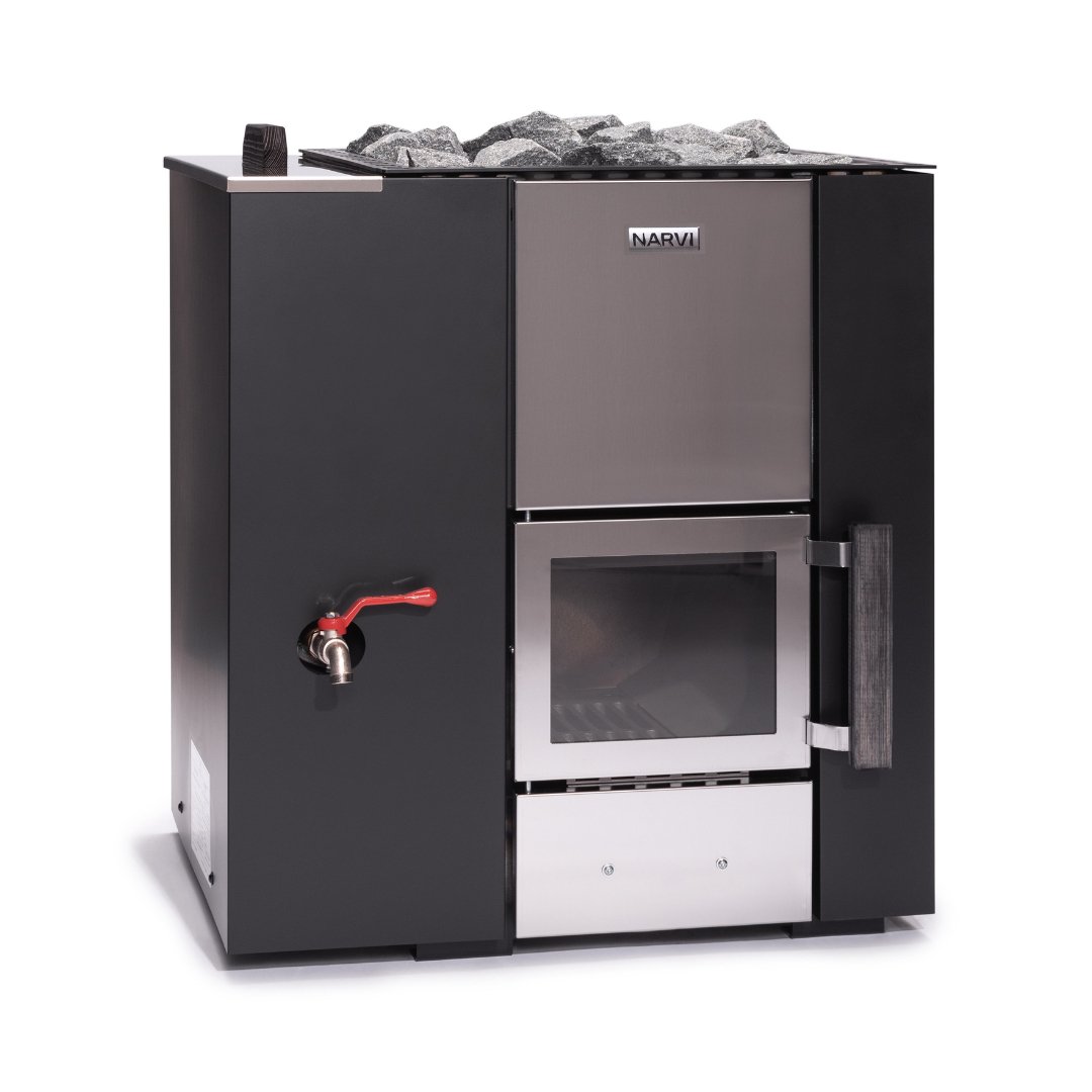 This heater provides an excellent löyly at an affordable price without compromising on Narvi’s high-quality ethos. Only the finest quality materials are used in the heaters we stock and we boast a 10mm thick steel firebox on all products ensuring a longevity that cannot be matched by any other brand. The Kuru is a perfect choice for a remote wilderness sauna cabin or a tucked-away garden sauna cabin, where its simple beauty complements the outdoor environment. The Narvi Kuru 14 is also available as a tunnel model so the heater can be fueled from outside the sauna or in an anteroom. There is also a fully stainless steel casing model for increased longevity, and a variant with a water tank which is a great option for providing warm water when washing after your sauna.