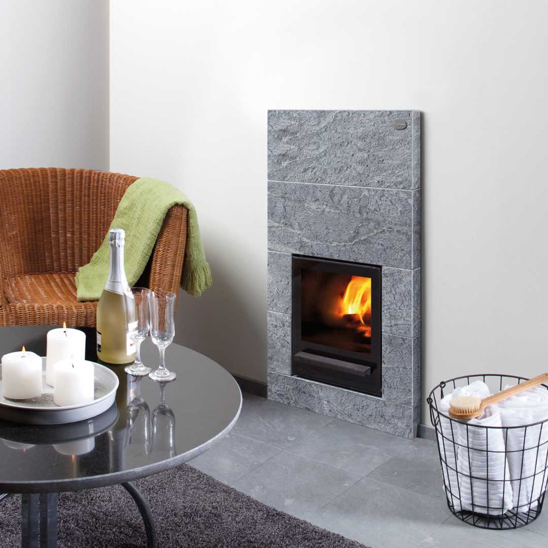 The Brushed soapstone cladding brings out the natural qualities of the stone.