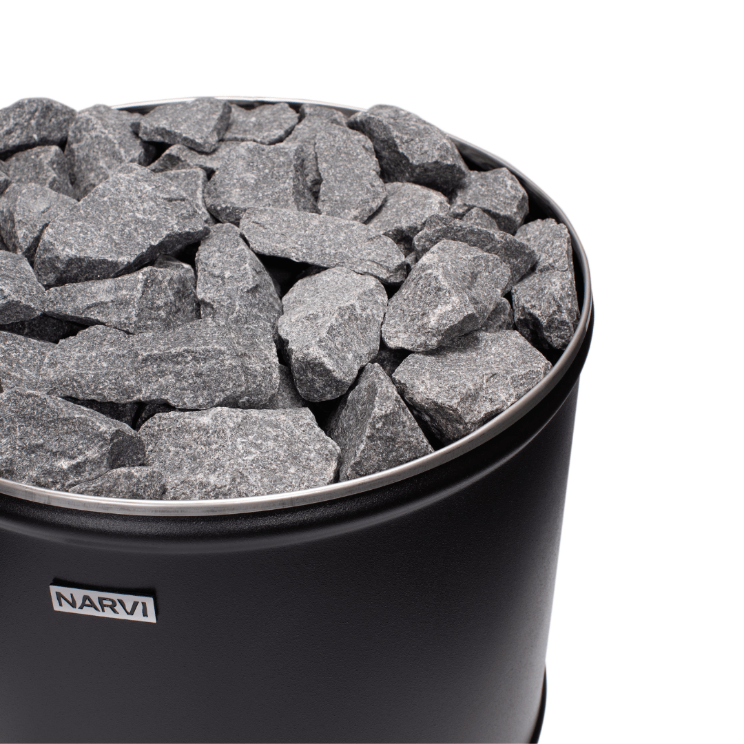 This heater requires up to 35kg of sauna stones. We recommend using 10-15cm Olivine Diabase or Vulcanite Sauna Stones for optimal performance.