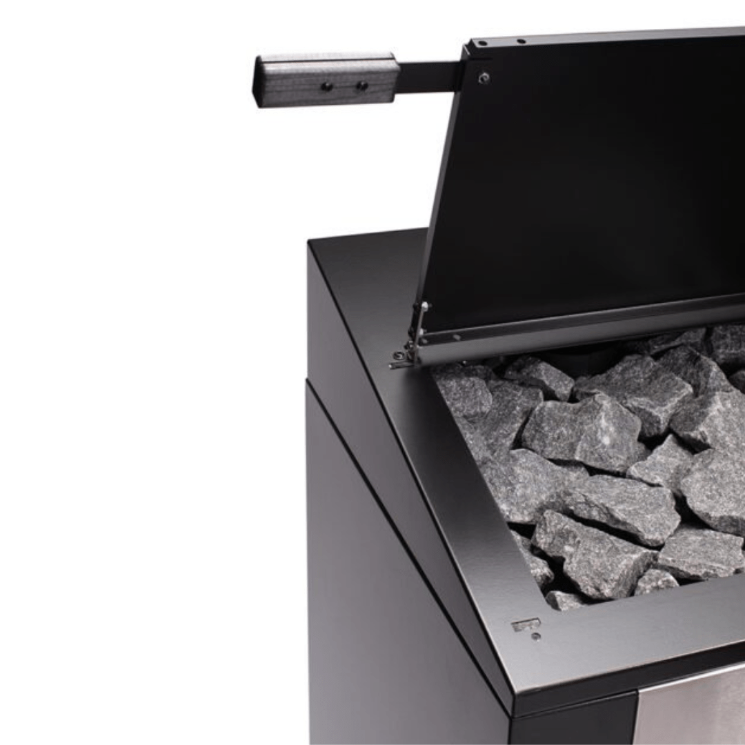 The Steam Master is also available as a tunnel-equipped model that allows the heater to be fed from outside the sauna. Ideal for those who wish their sauna to serve solely as a place of relaxation.